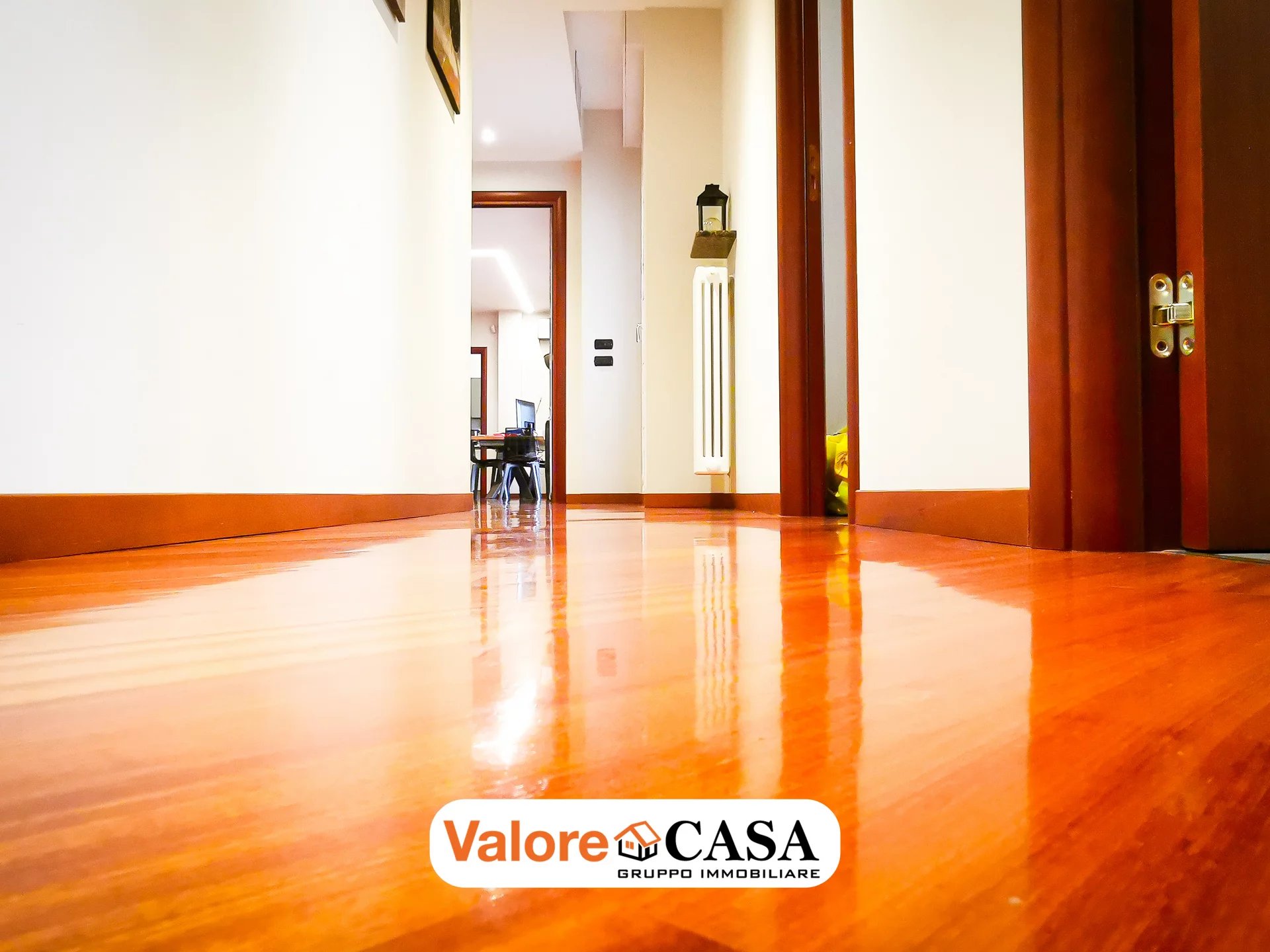 L’intera abitazione è caratterizzata da pavimenti in legno, che donano calore e raffinatezza agli ambienti.