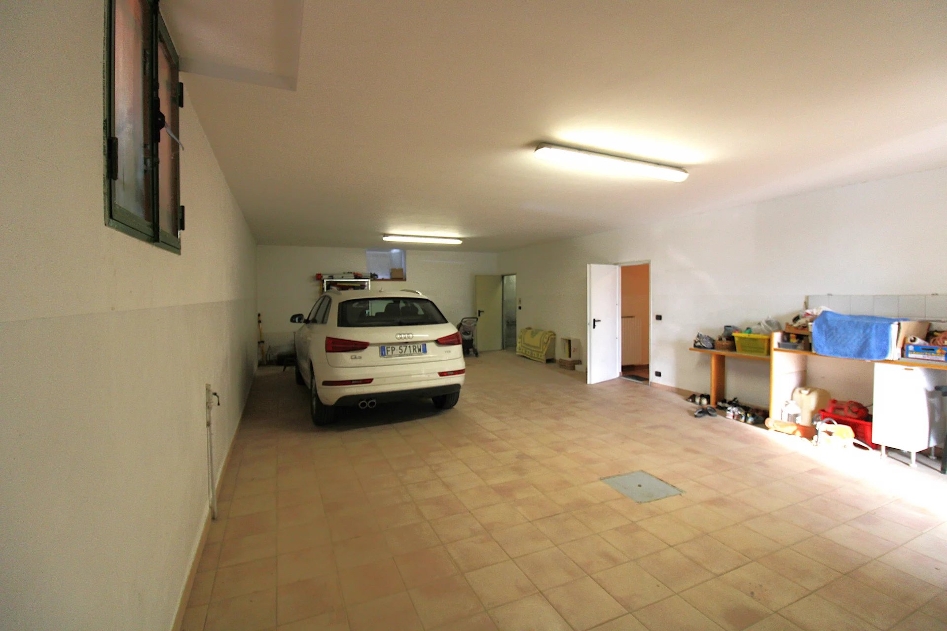 Al piano terra, troviamo due cantine, uno studio, un bagno e per finire un un box capace di rimessare quattro auto. Completa la proprietà il giardino con metrature generose e recintato, e il porticato dove poter far pranzi estivi ma riparati dal sole.