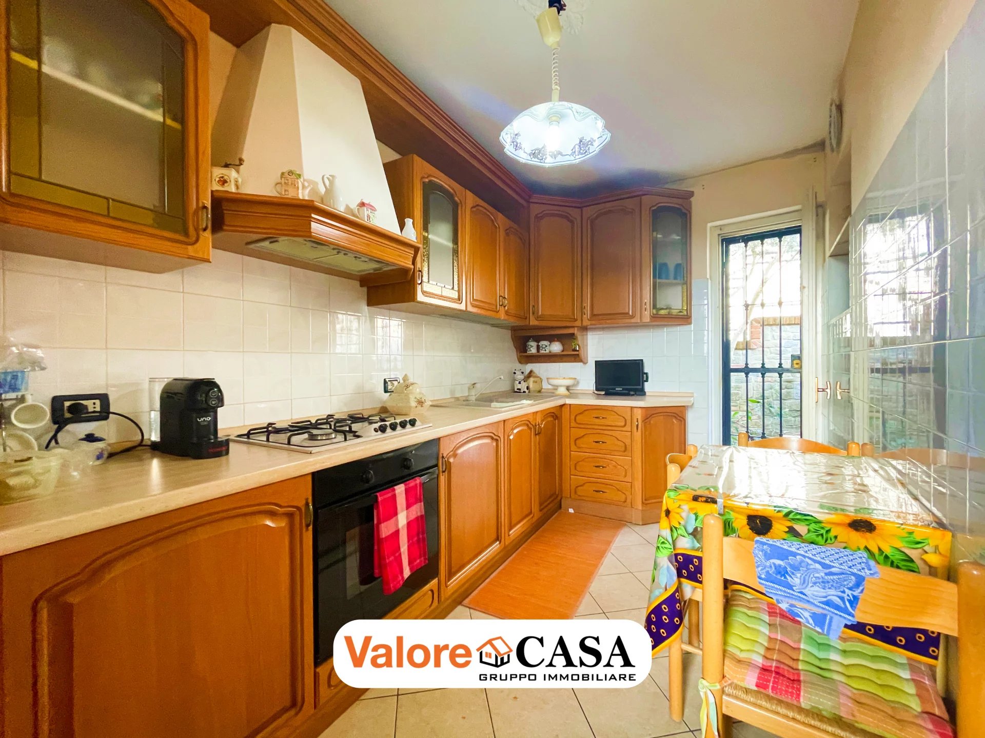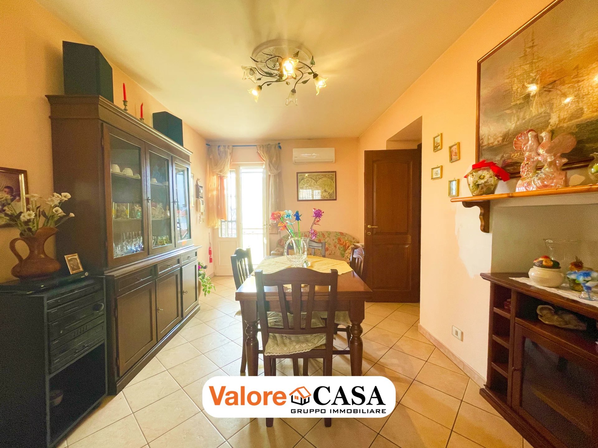 Salendo al primo piano, si accede al primo appartamento, composto da una cucina abitabile, bagno finestrato, tre camere da letto e terrazzo, con spazi ben distribuiti e luminosi, adatti a una famiglia numerosa o a chi desidera ambienti separati per lavoro e relax.
