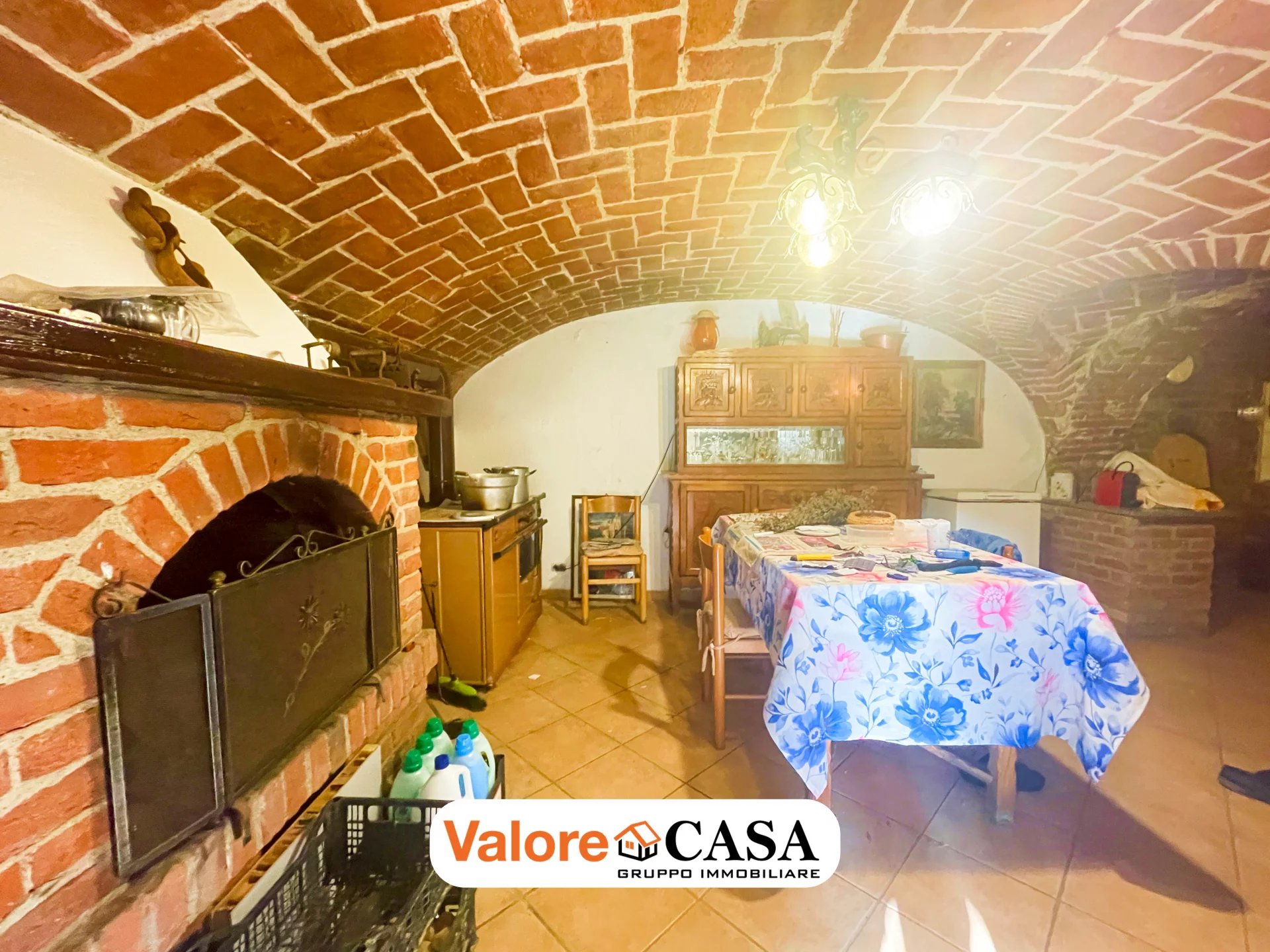 Al piano terra troviamo una zona accessoria ampia e versatile: due box auto, magazzino, e una suggestiva tavernetta con camino e soffitto a volta in mattoni sabbiati, perfetta per momenti conviviali o per creare uno spazio hobby dal grande fascino.