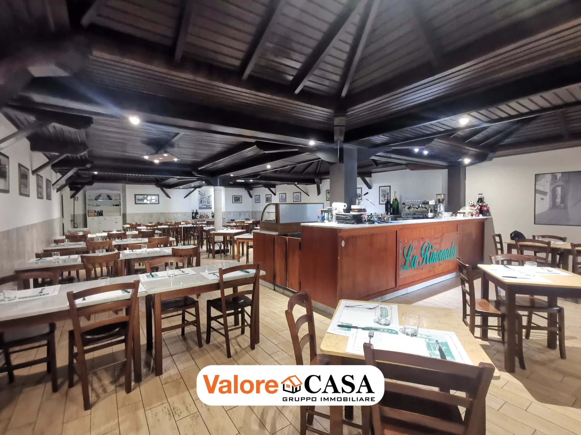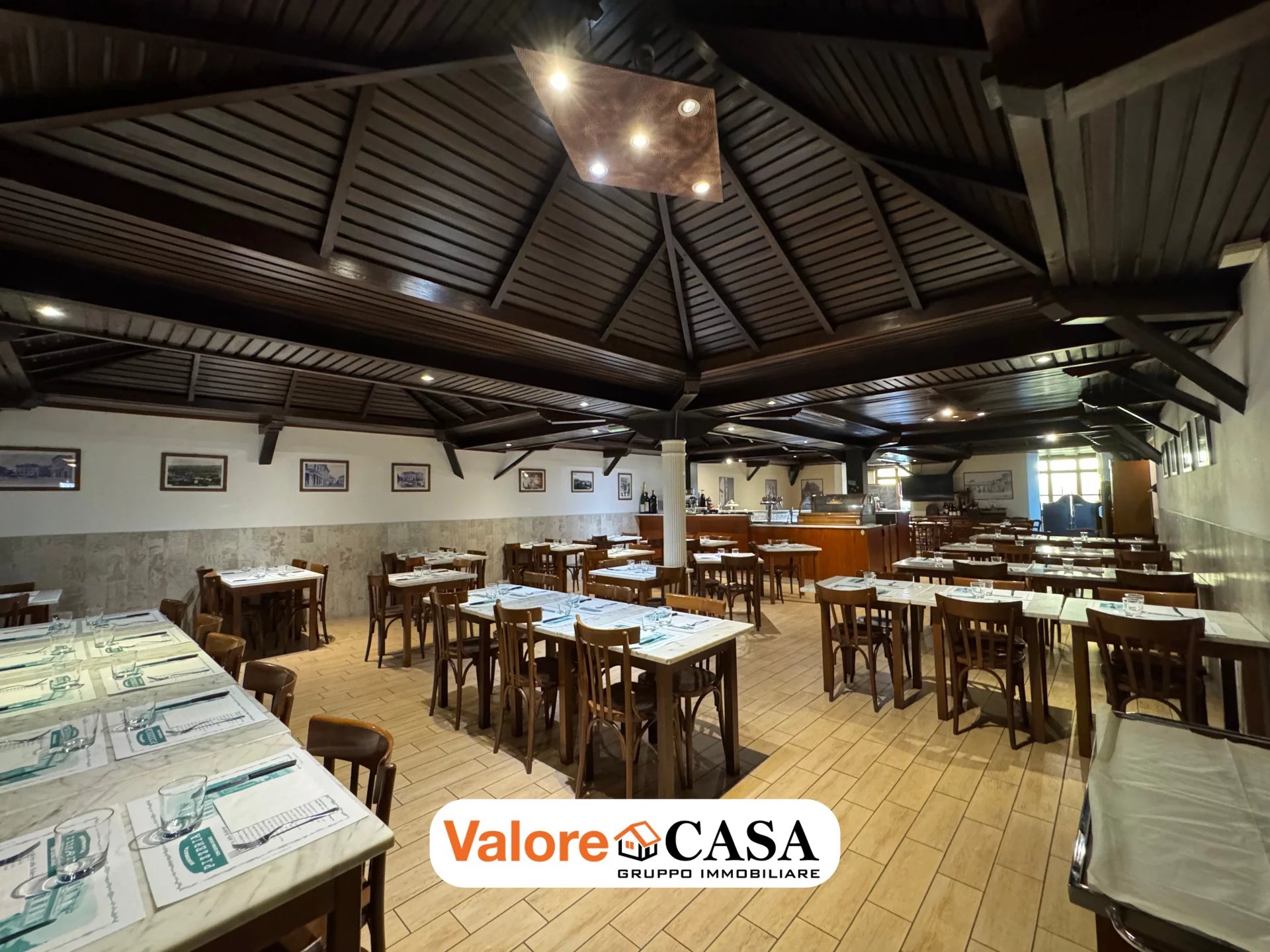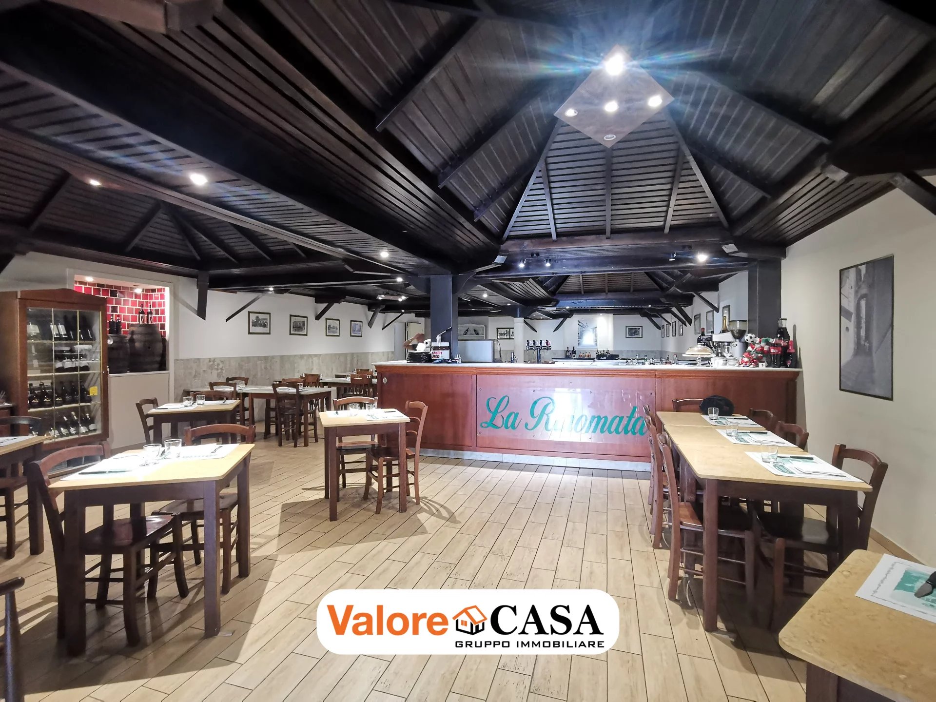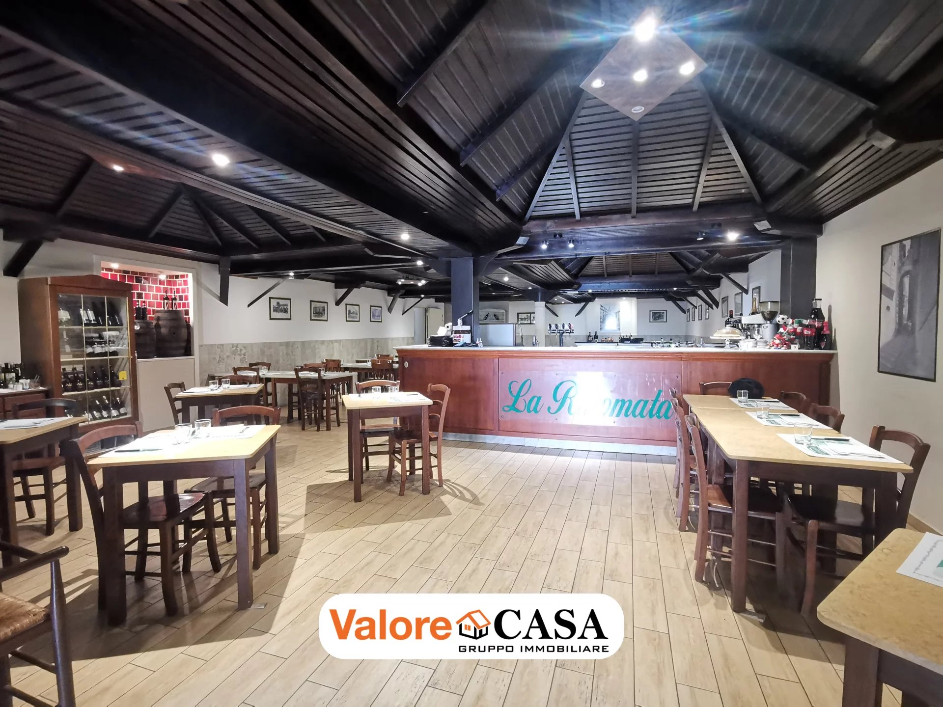 Il locale è caratterizzato da 200 mq disponibili, 80 posti a sedere, forno a legna e cucine attrezzate.