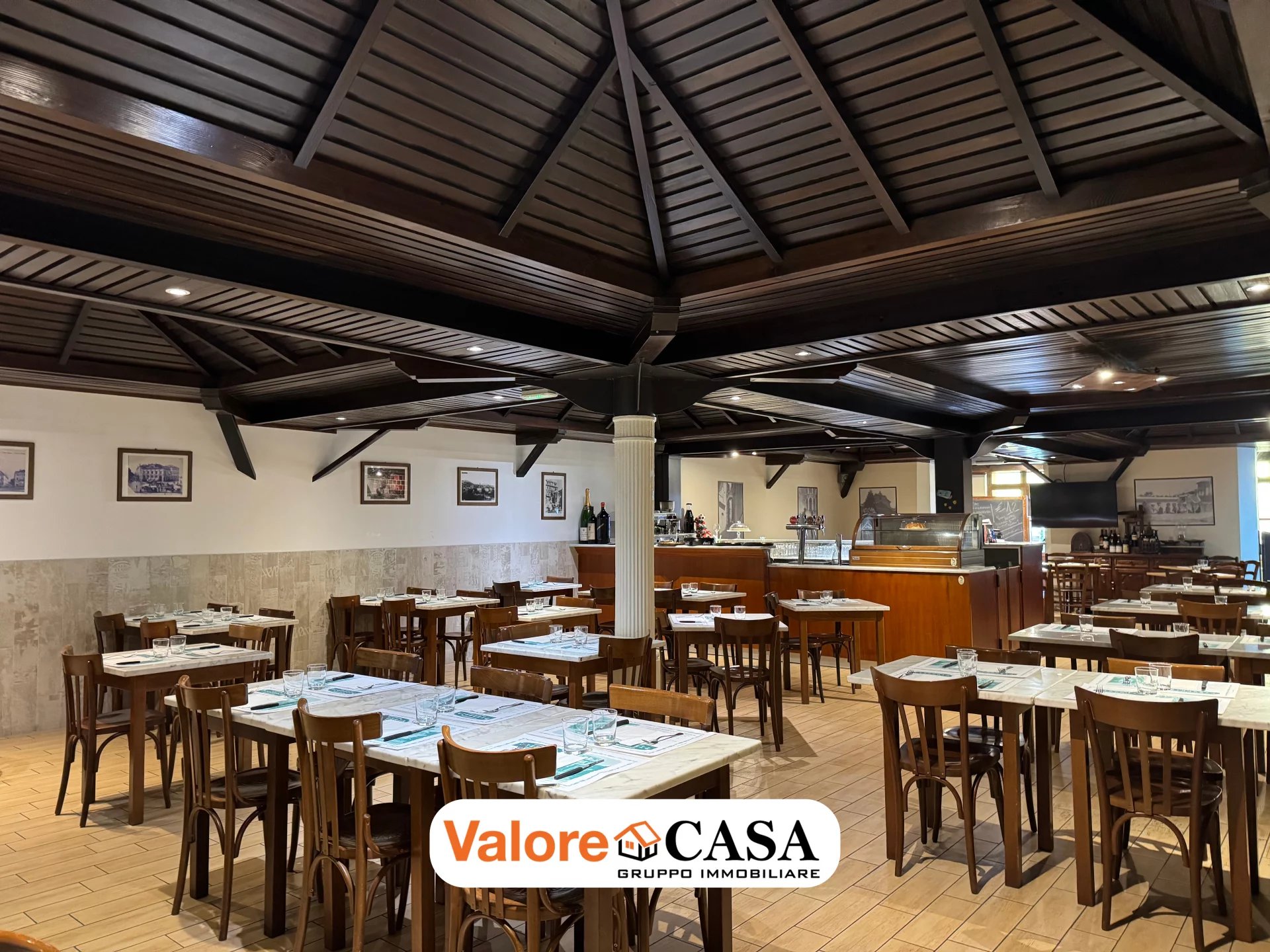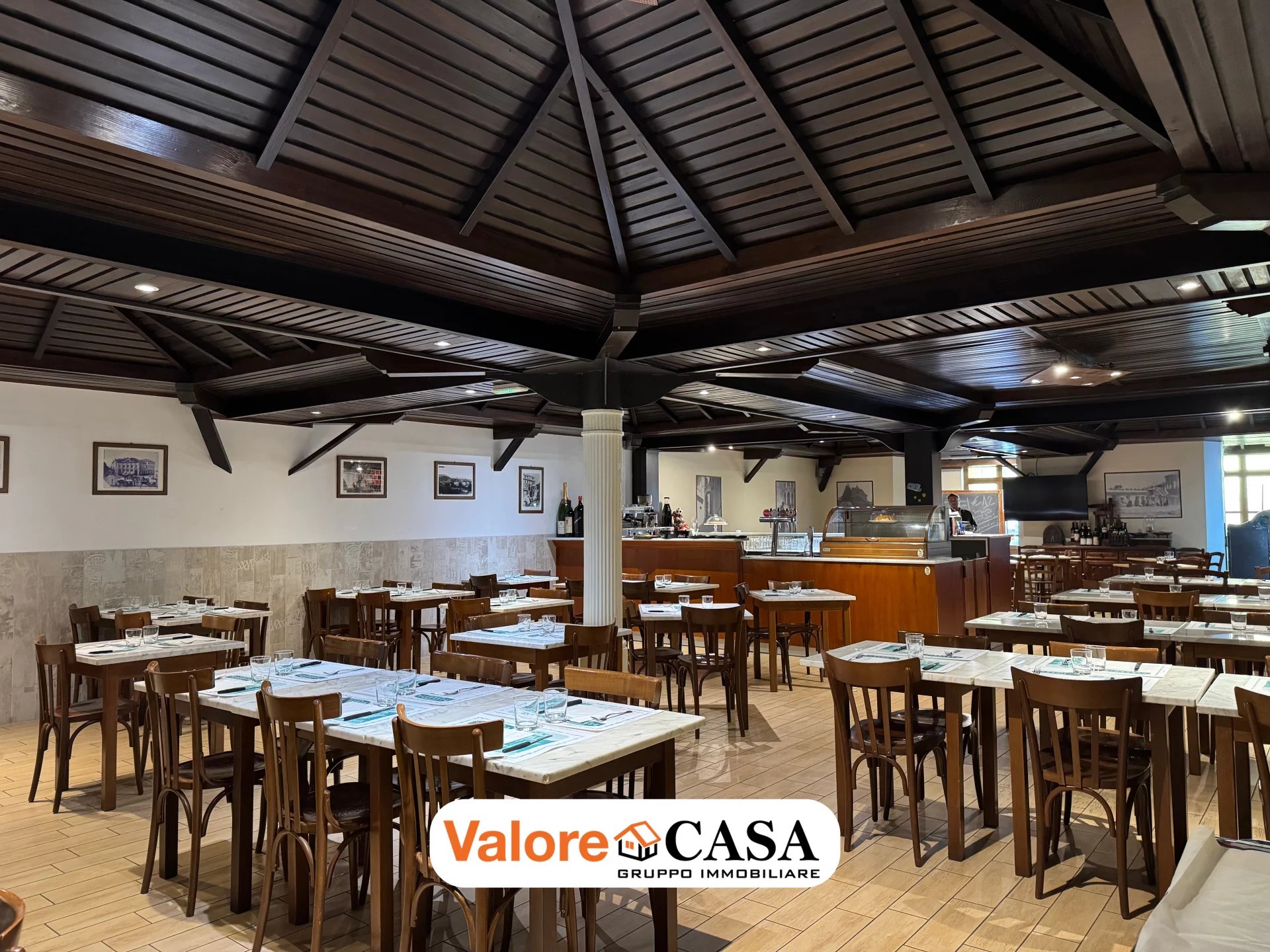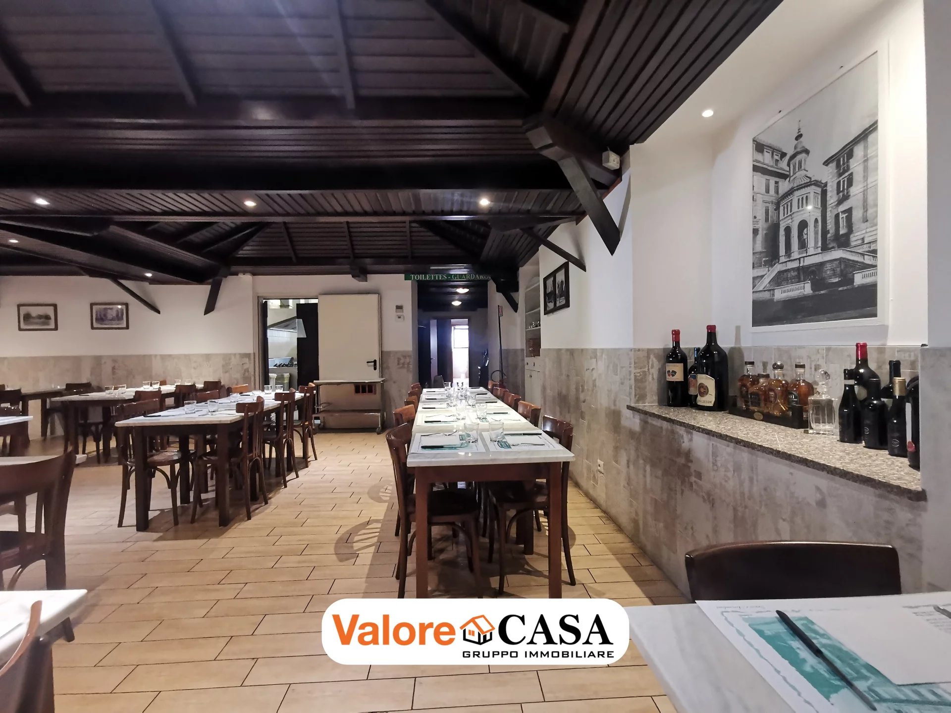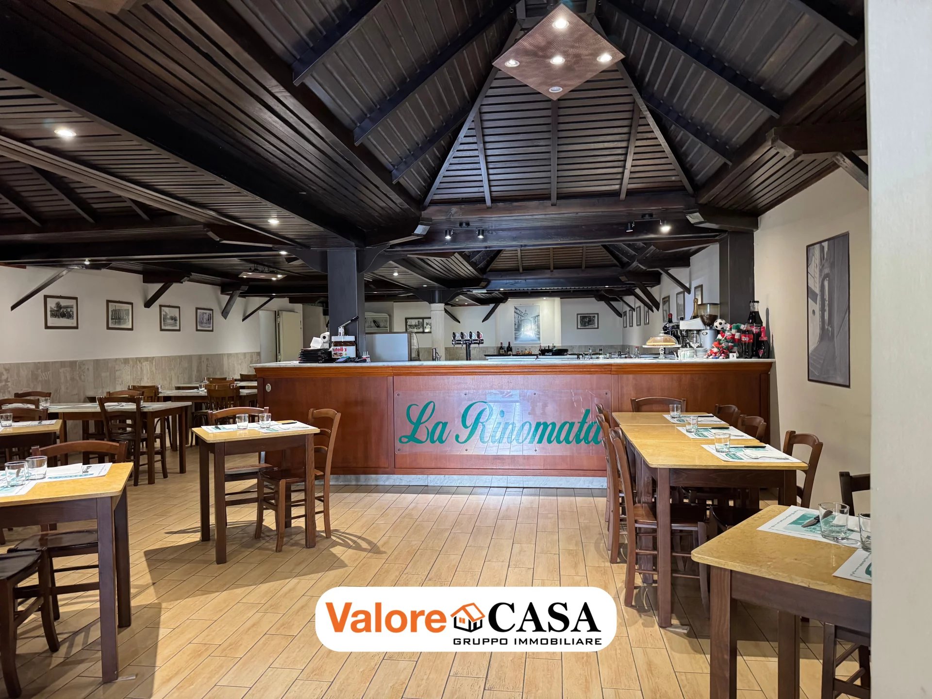 Il locale è caratterizzato da 200 mq disponibili, 80 posti a sedere, forno a legna e cucine attrezzate.